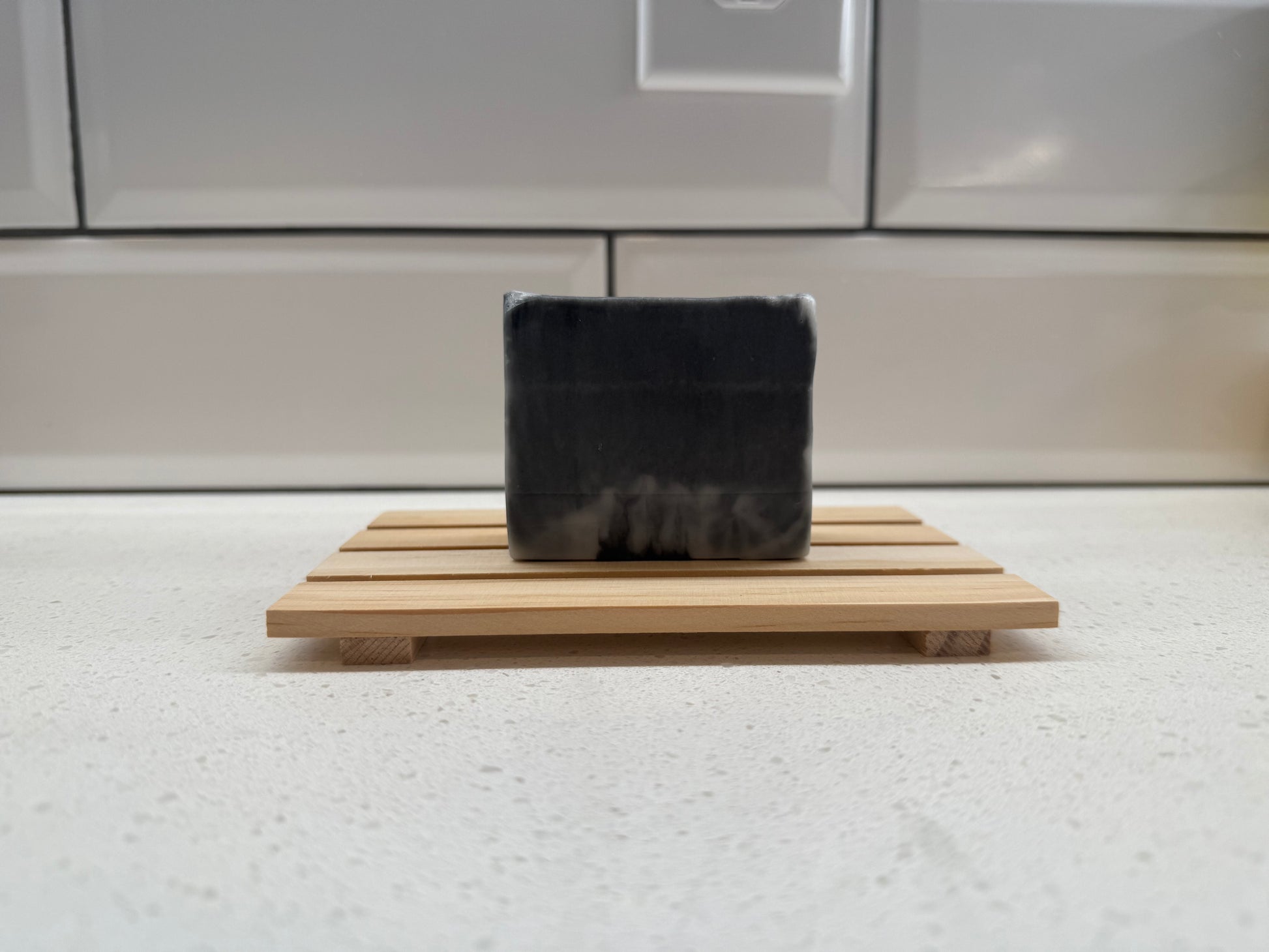 A detoxifying and deep cleansing bar formulated to use on your face and body. Activated coconut charcoal draws out impurities from within the skin by binding to dirt and excess oils while the blend of essential oils work to provide calming and anti-bacterial properties to soothe and cleanse your skin resulting in a clearer and smoother complexion.Our activated charcoal soap is formulated to help gently exfoliate and purify troubled skin. Safe for pregnant women